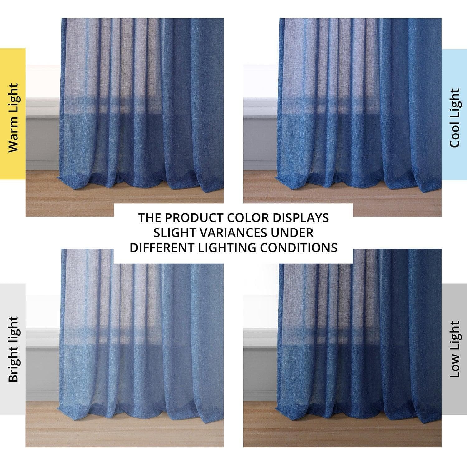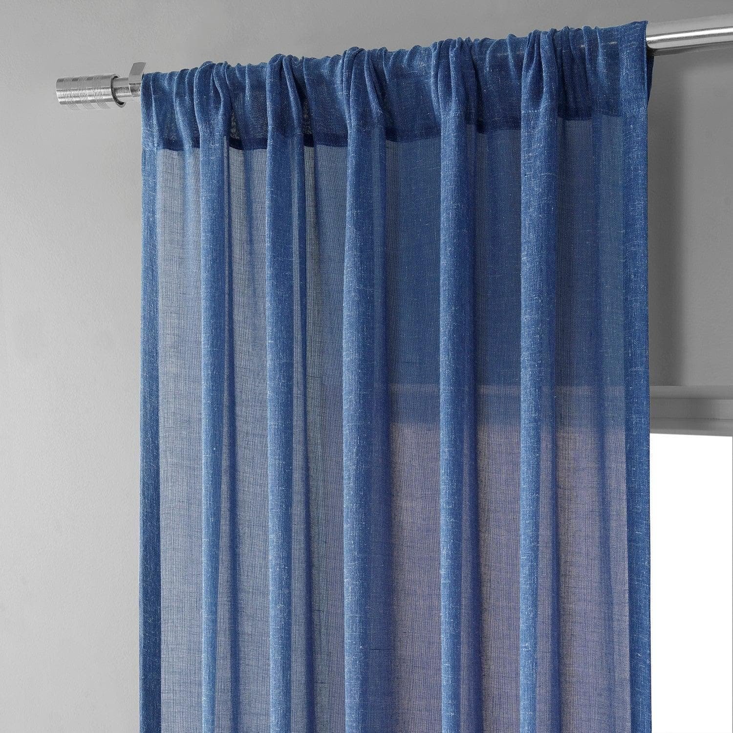 Blue Cyan Faux Linen Sheer Curtain Pair (2 Panels)