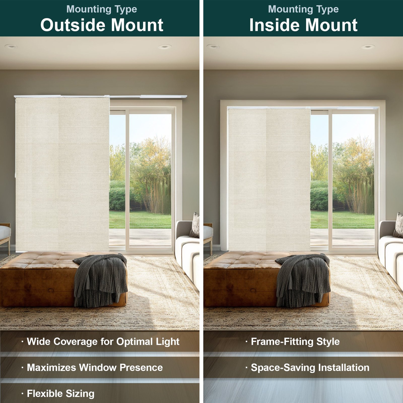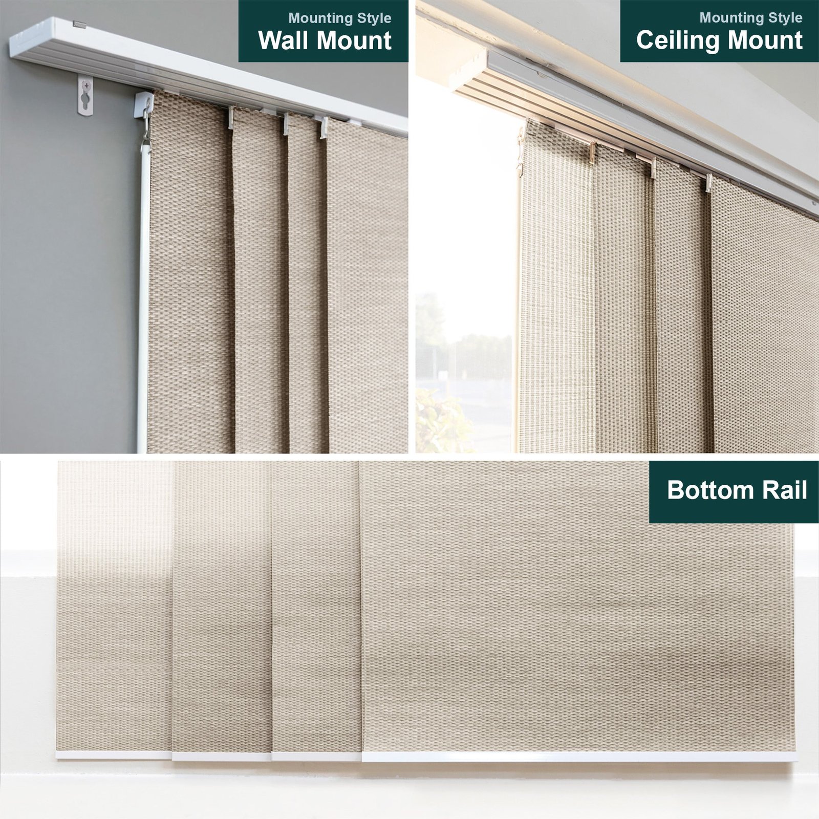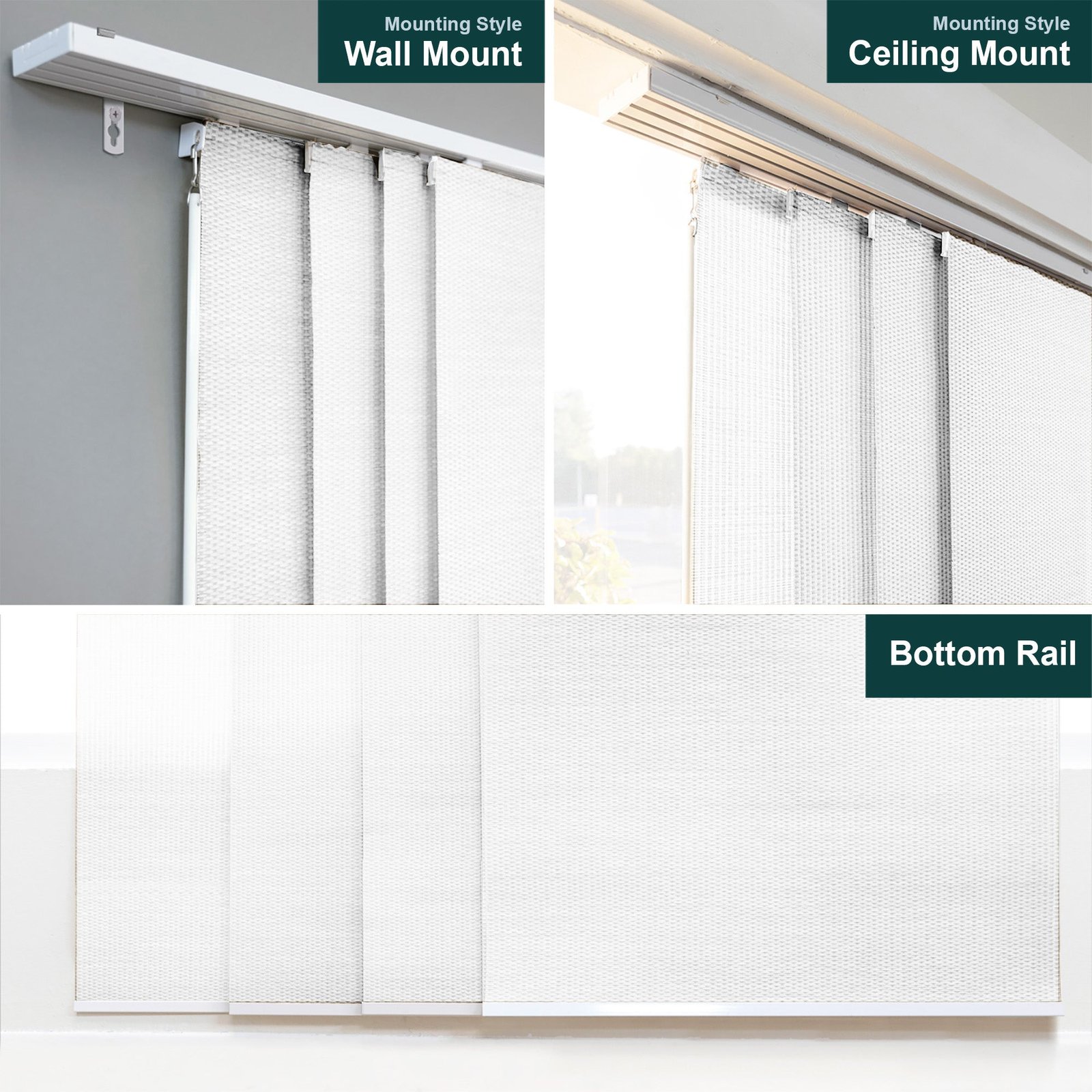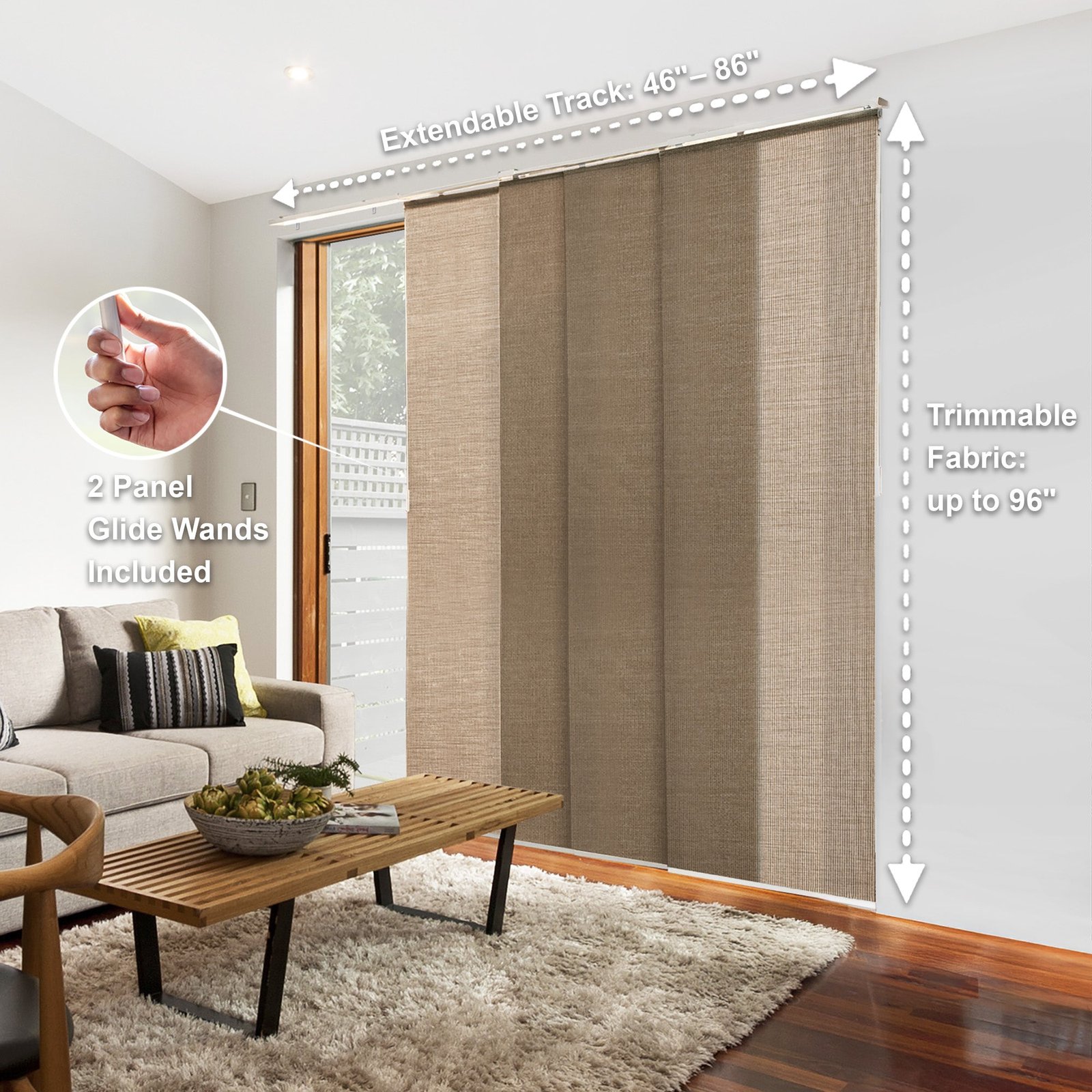 The fabric panels are trimmable, allowing you to customize the height for a perfect fit. The 4-rail headrail adjusts from 46′ to 86′ wide, with dual wands for smooth operation. Choose left or right opening, and mount to either the wall or ceiling. Finished with white aluminum top and bottom rails.