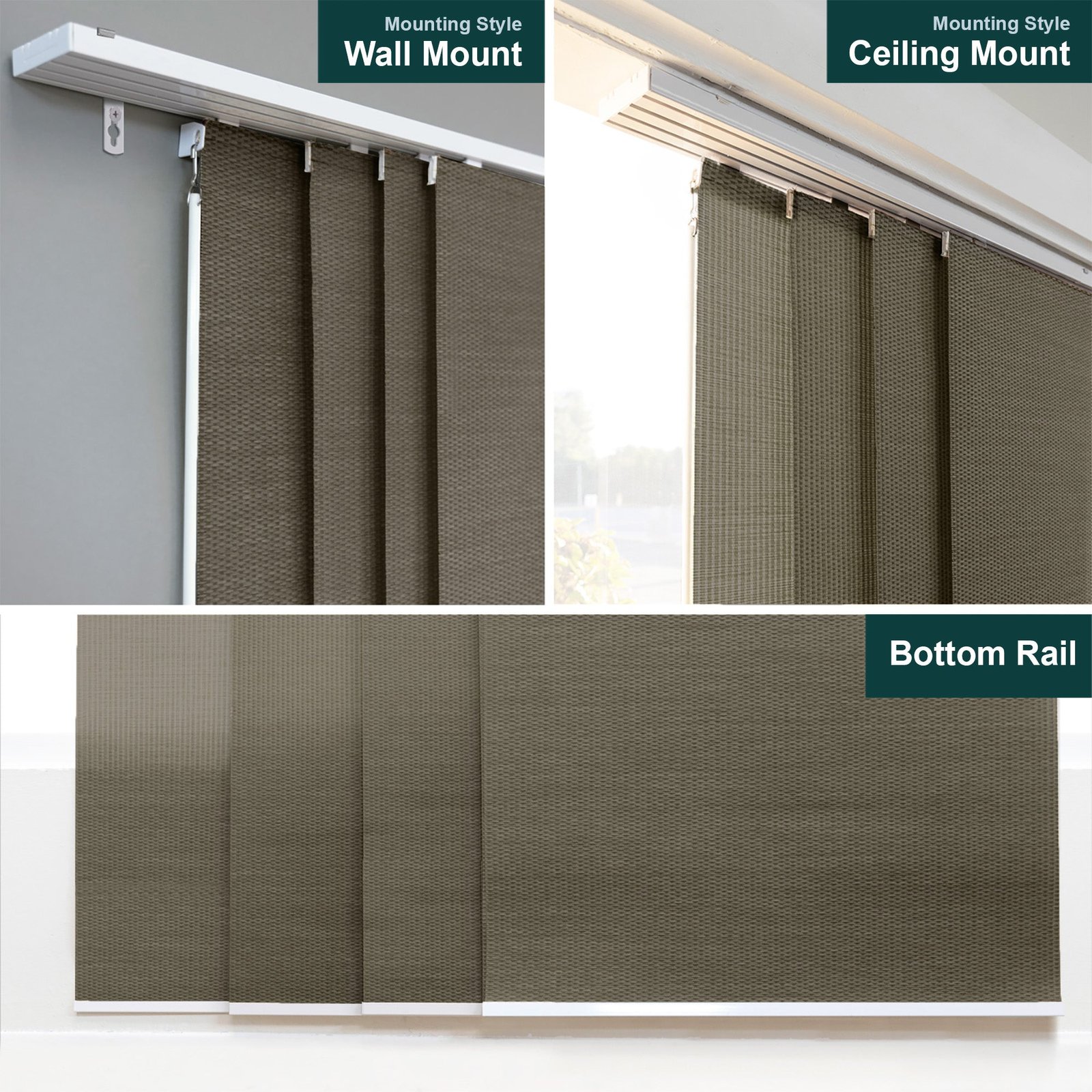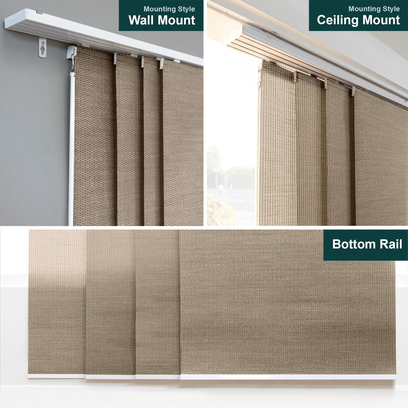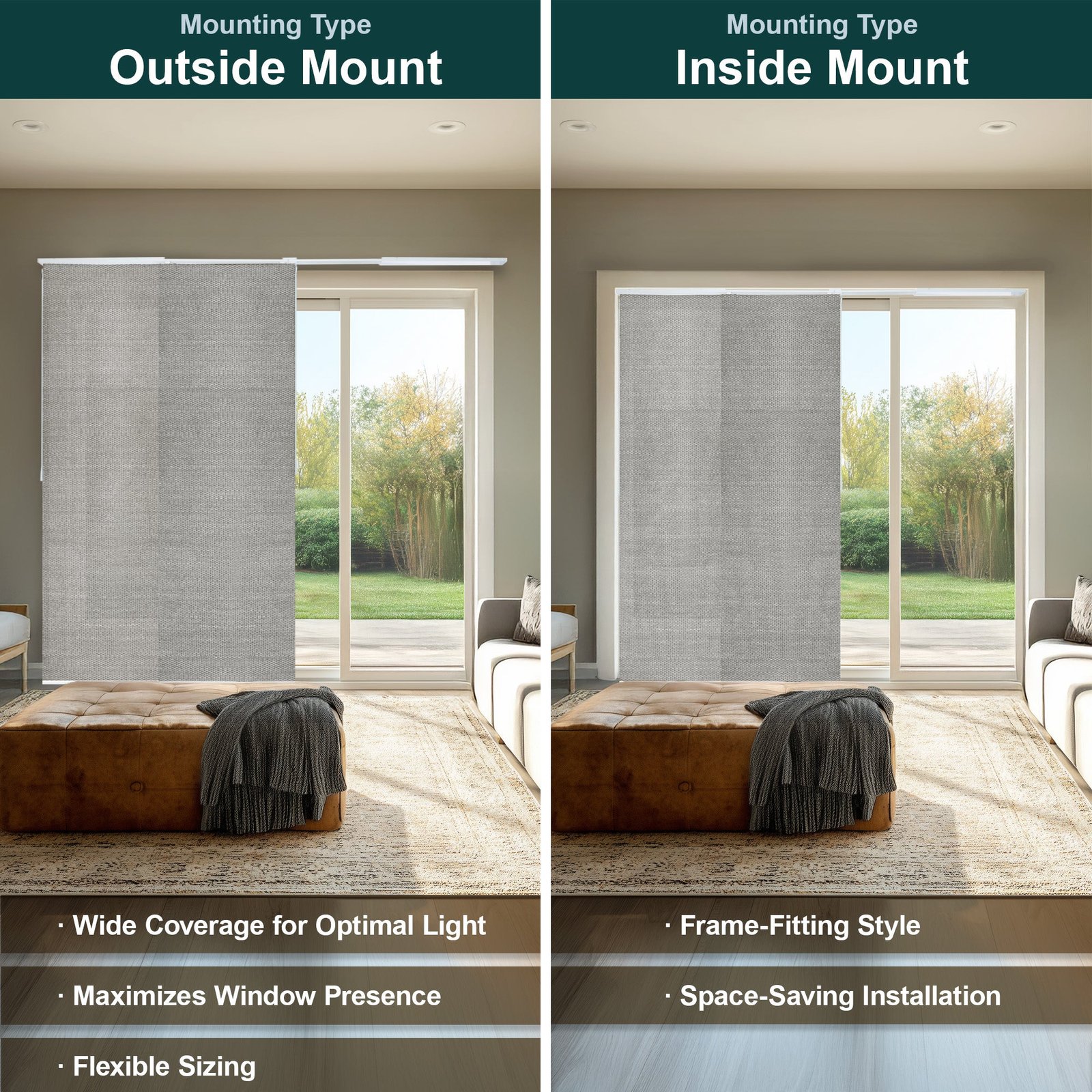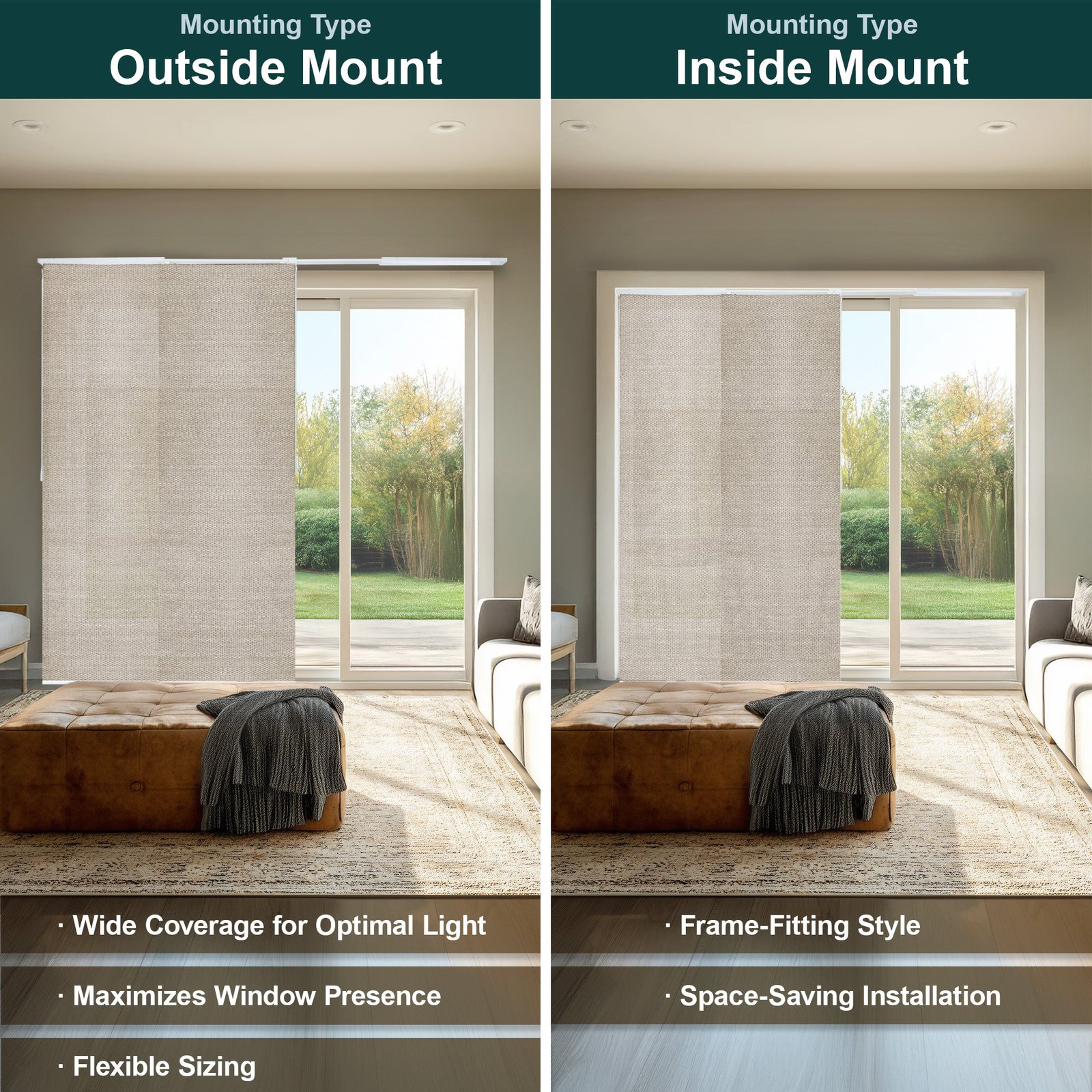The fabric panels are trimmable, allowing you to customize the height for a perfect fit. The 4-rail headrail adjusts from 46′ to 86′ wide, with dual wands for smooth operation. Choose left or right opening, and mount to either the wall or ceiling. Finished with white aluminum top and bottom rails.