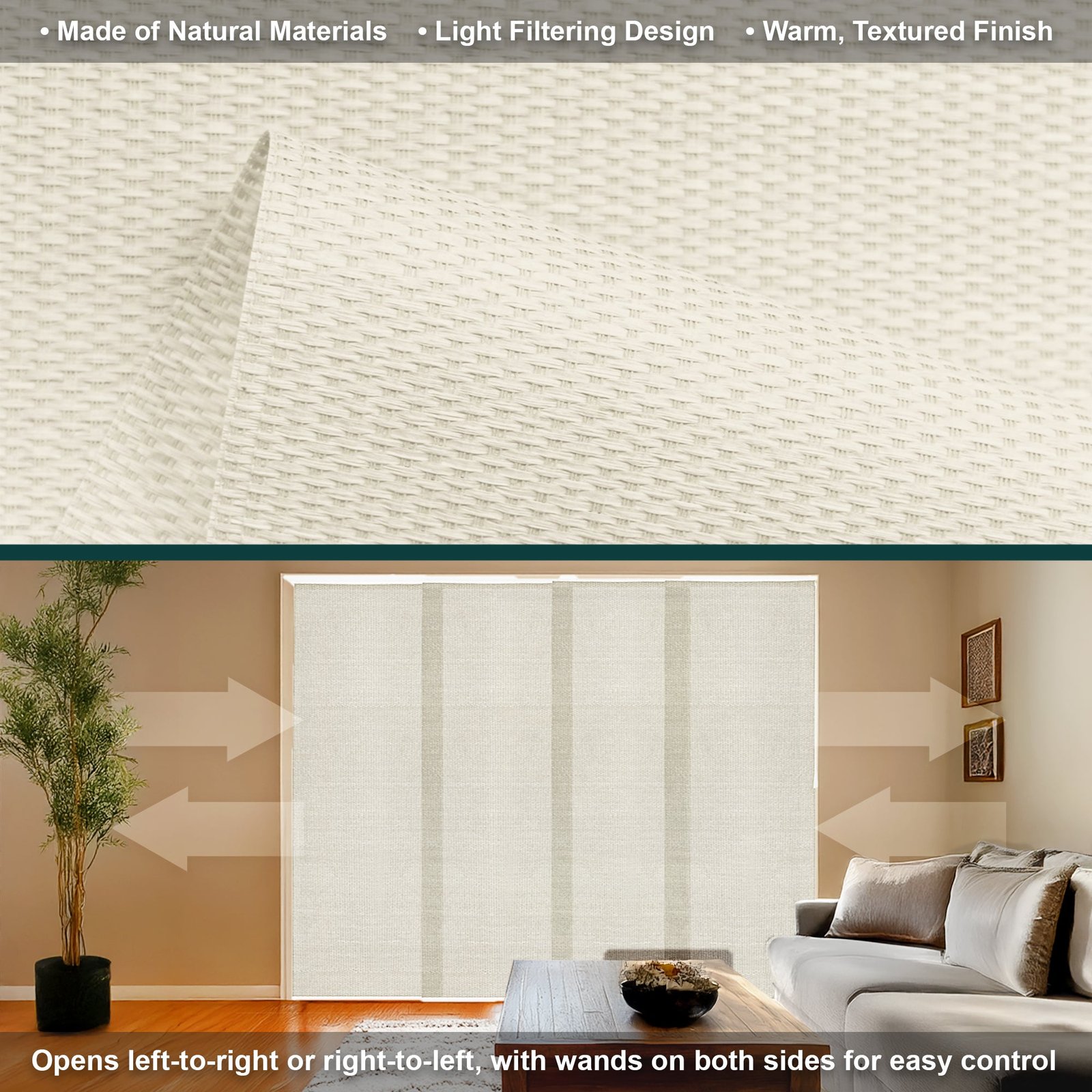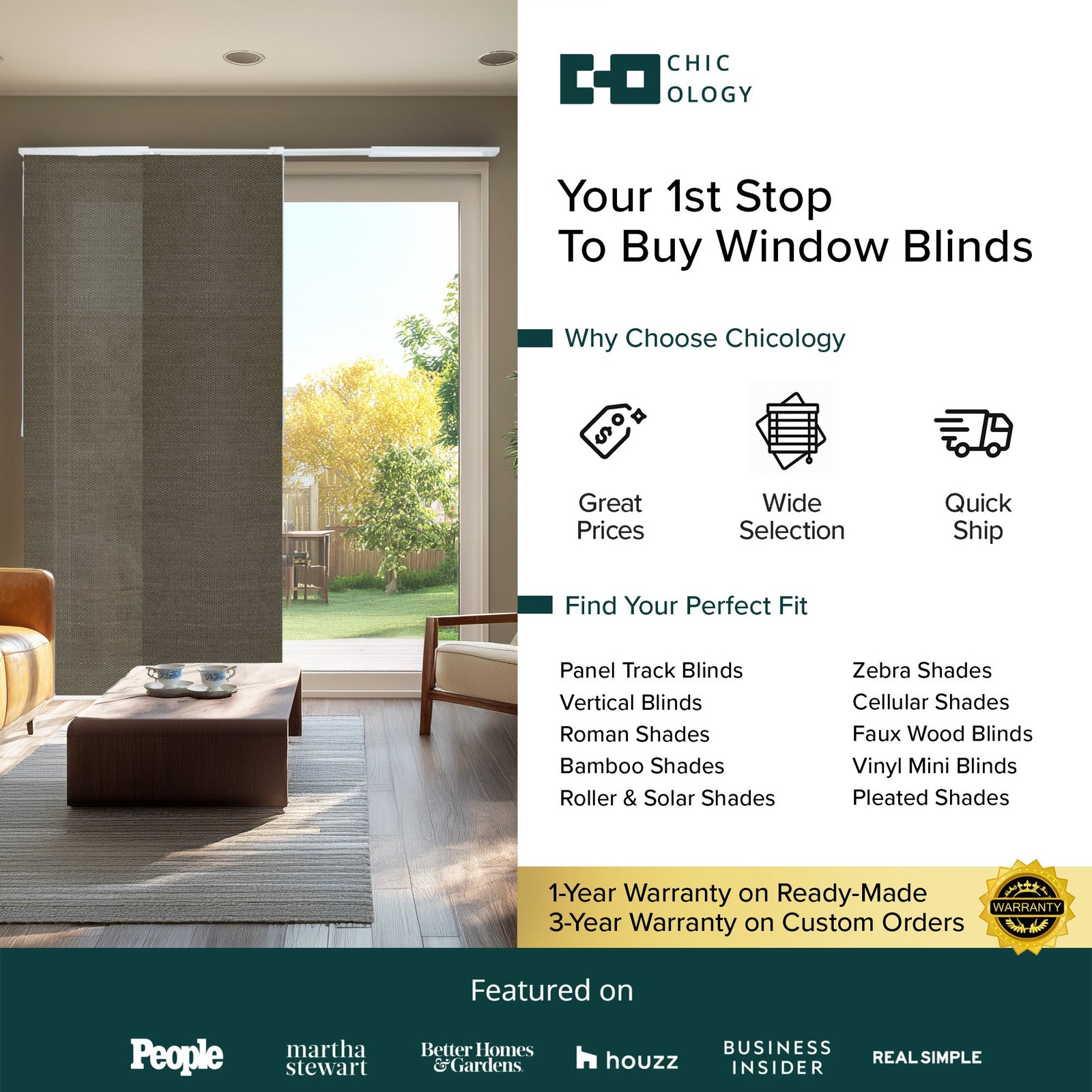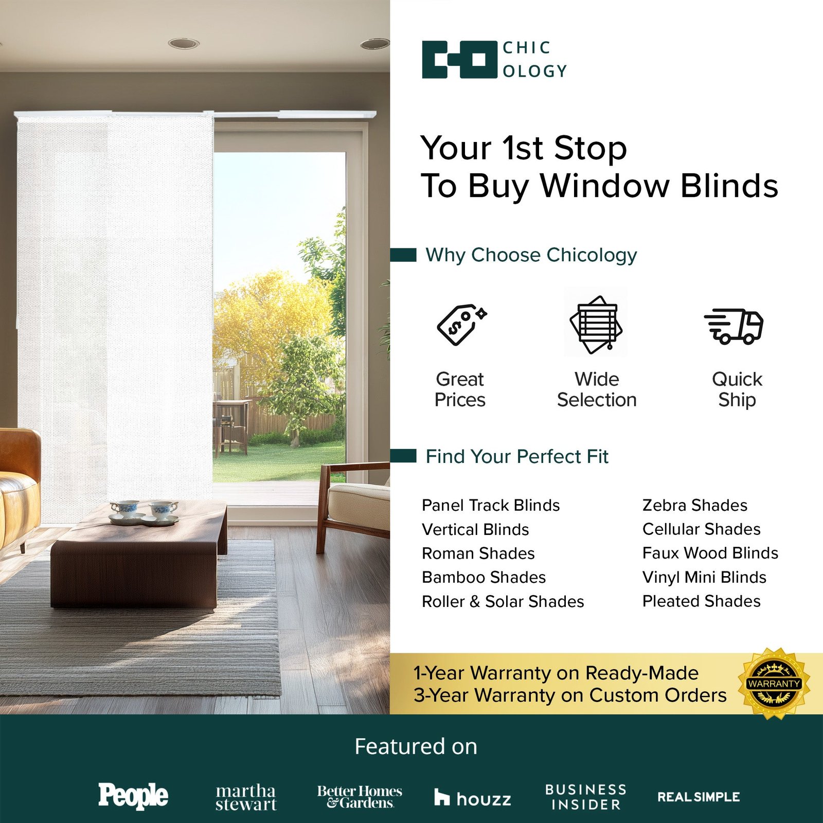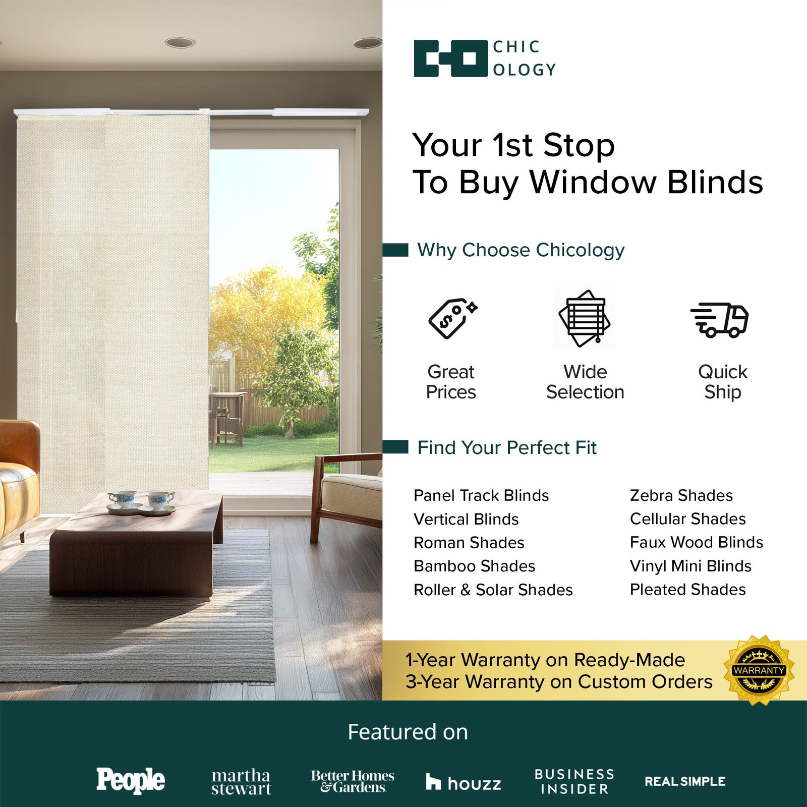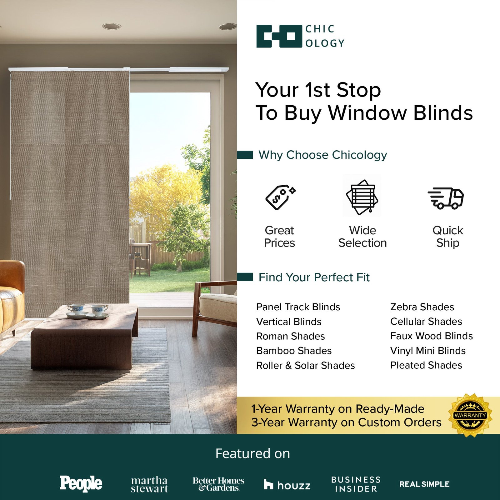 Bring natural elegance to your home with the Tahiti Collection, featuring our classic woven panel track blinds designed to mimic tropical textures. These light-filtering fabric panels evoke the breezy, organic feel of island living with a subtle weave that brings warmth and movement to your windows.