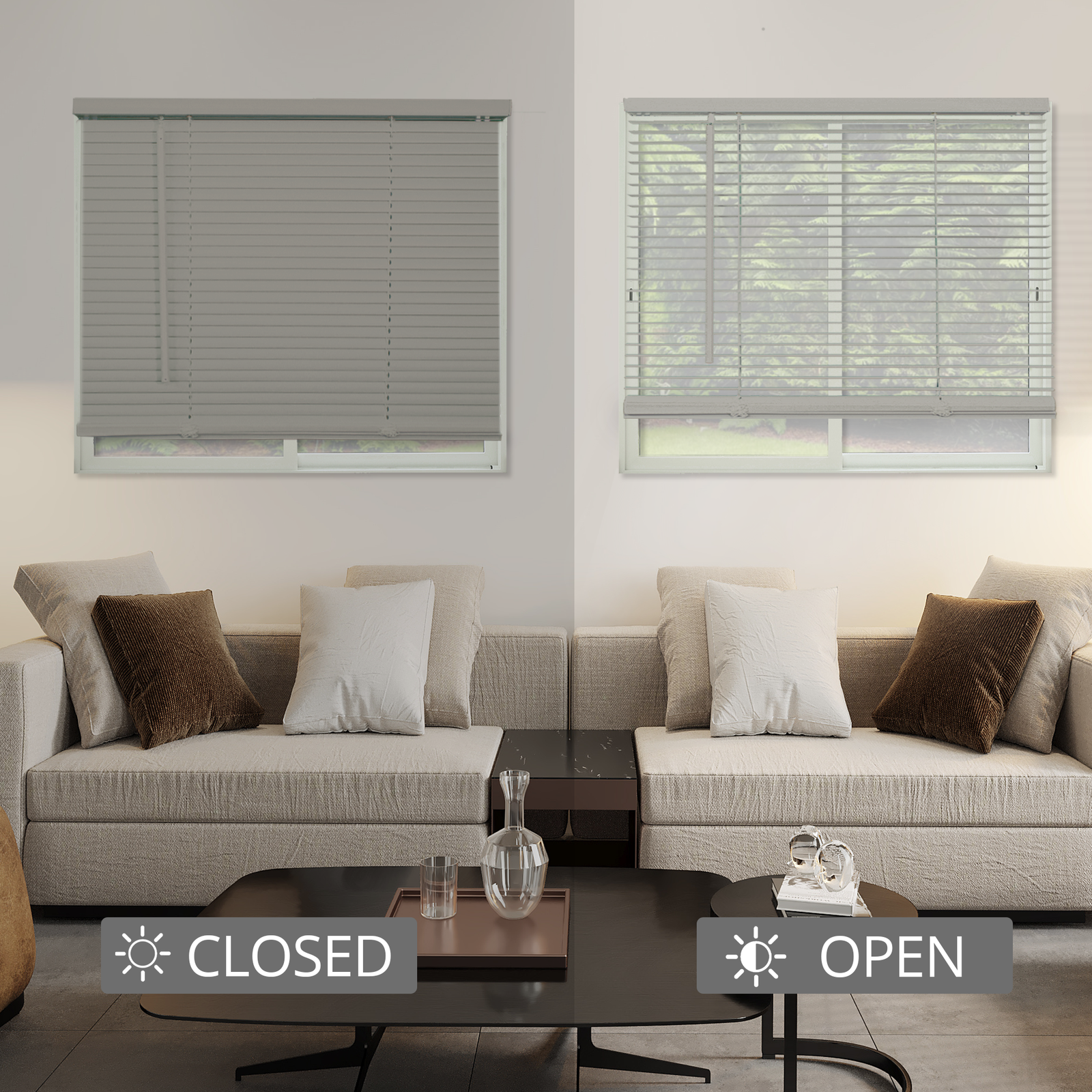 Our Vinyl Mini Blinds in Gray are the perfect choice for quality and value. These light control blinds constructed from durable, versatile vinyl that makes them long-lasting and strong as they are warp, chip, and fade resistant. The cordless option offers child safety and effortless operation; simply lift or lower these blinds to your preferred height.