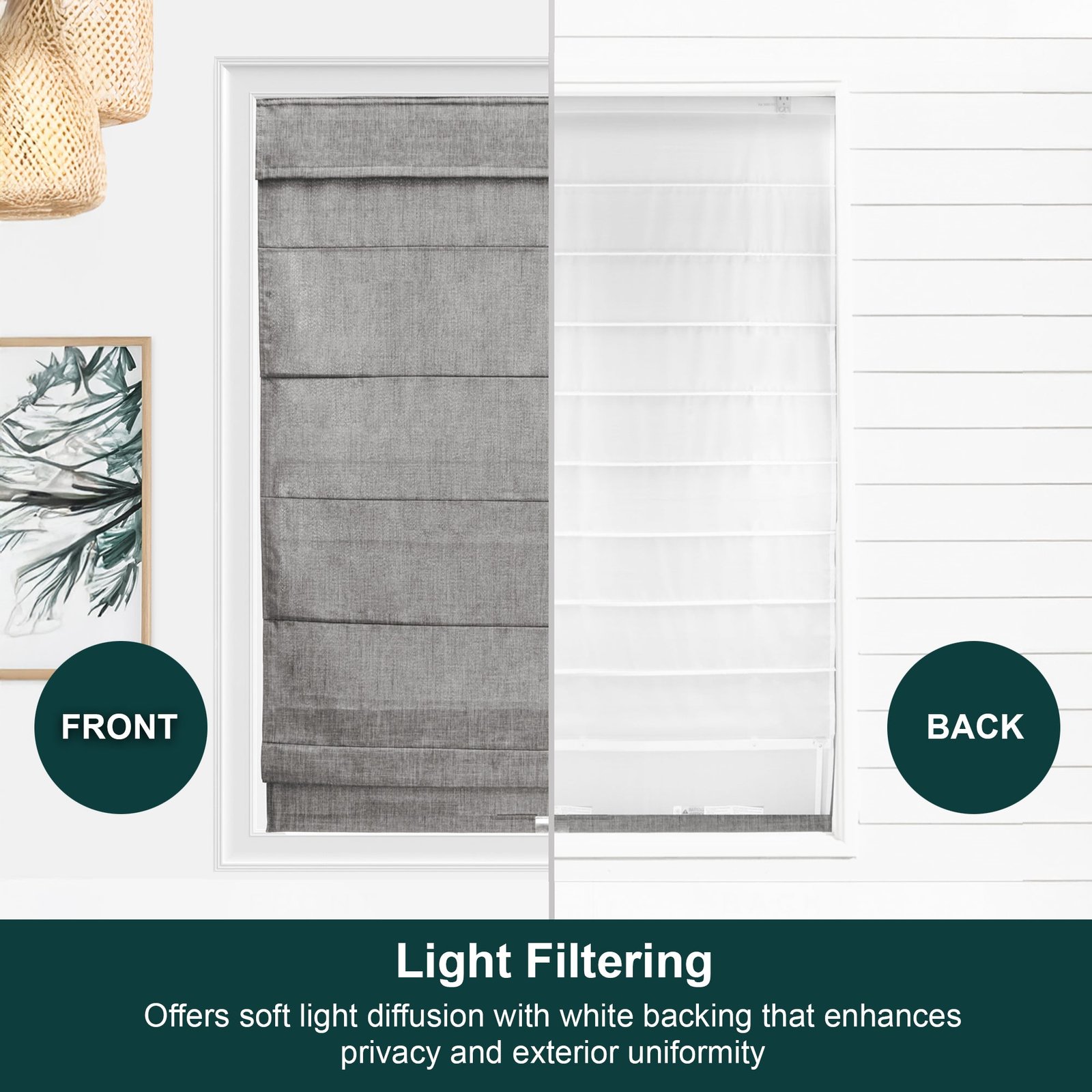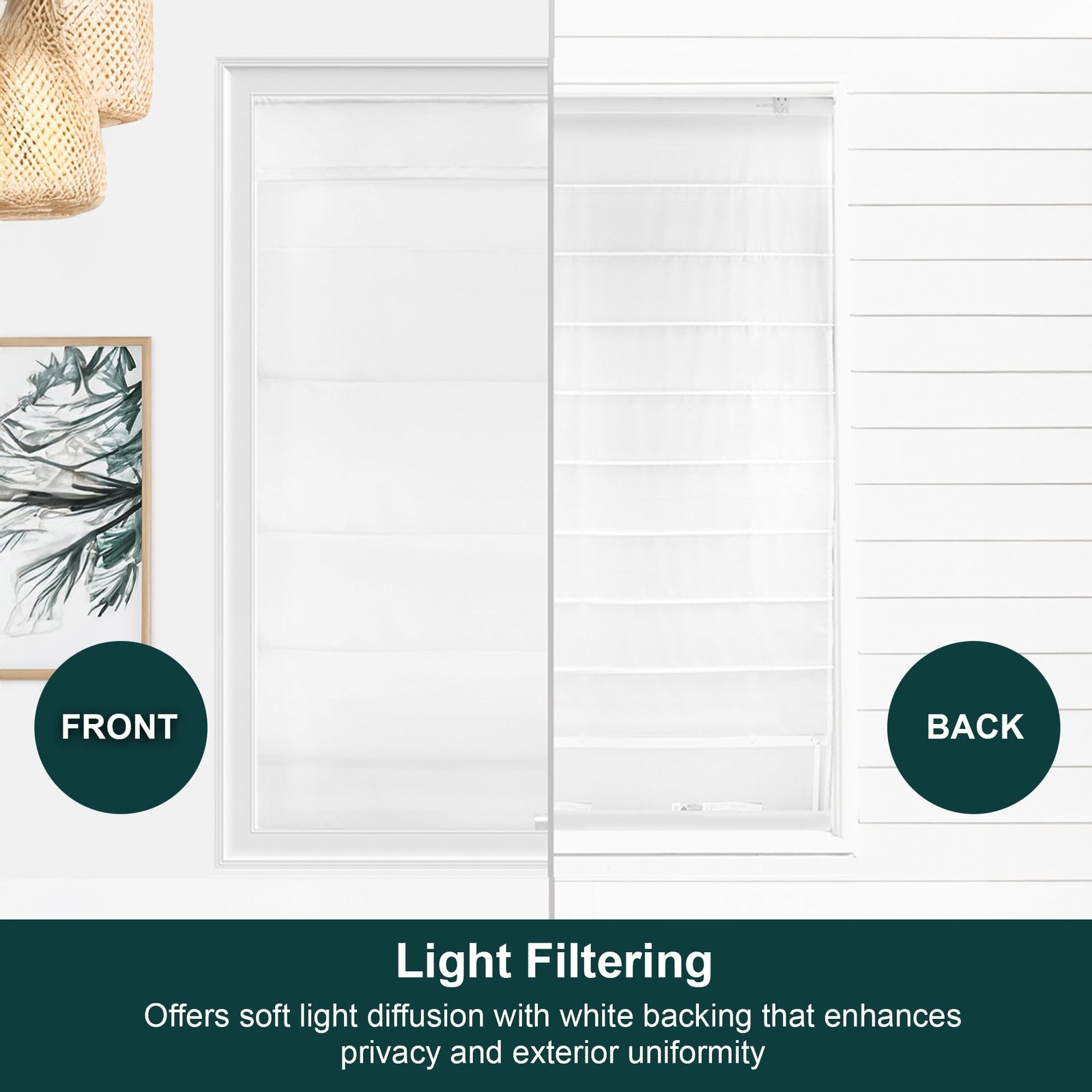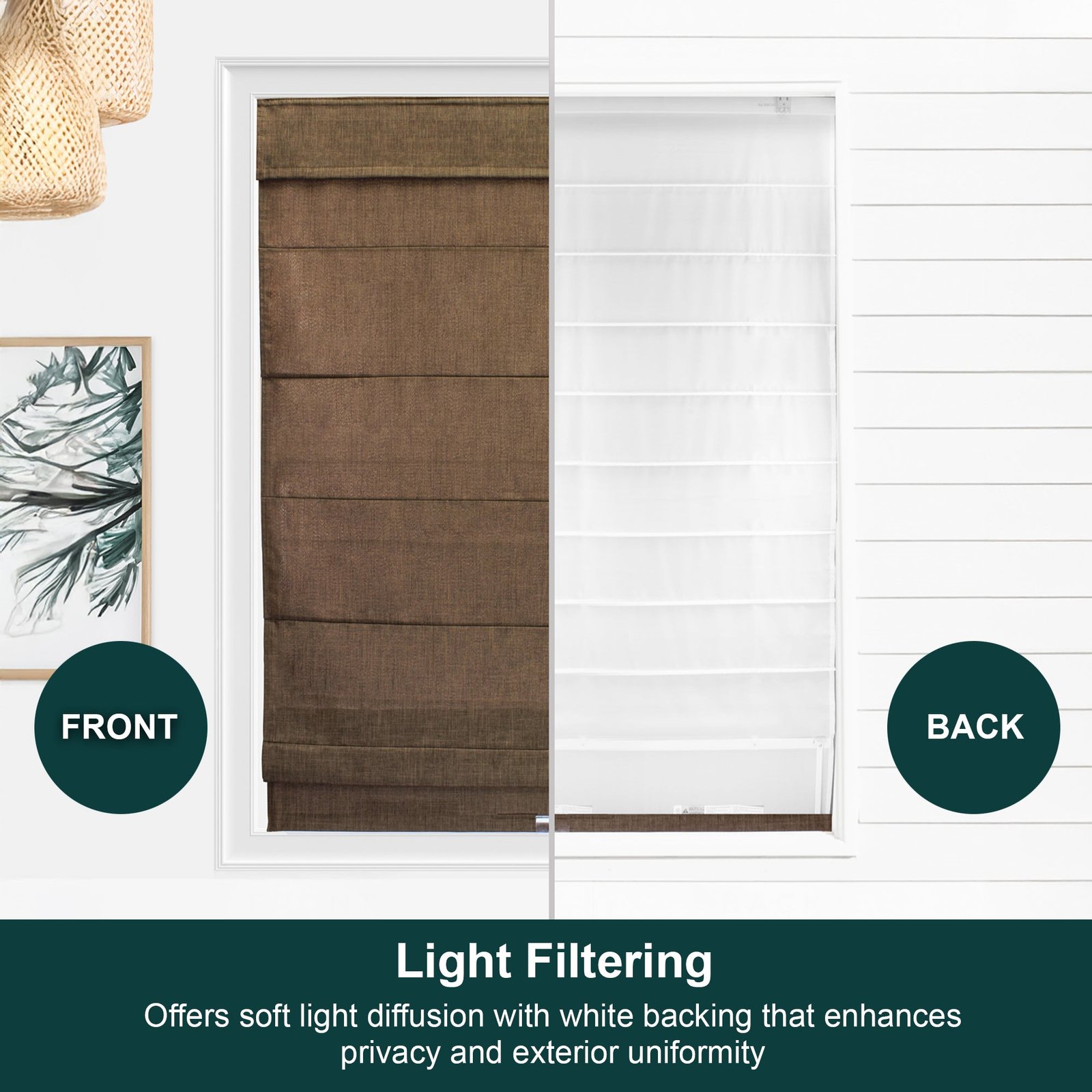Roman Shades – Light Filtering, Crosshatched with Liner and Valance