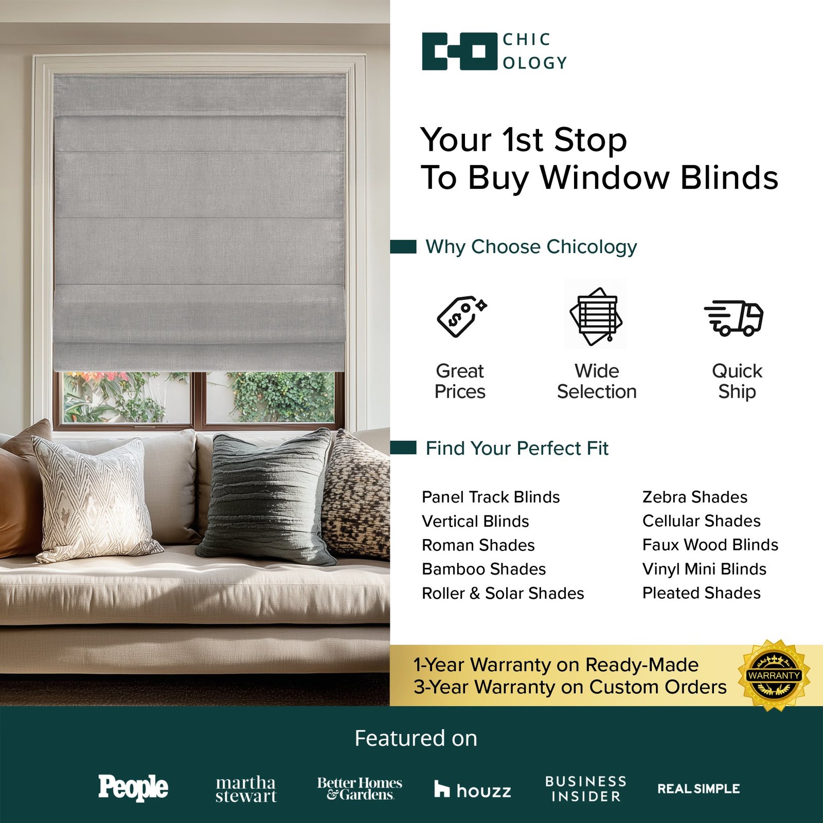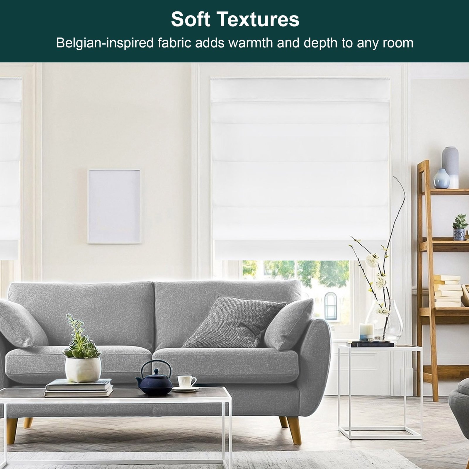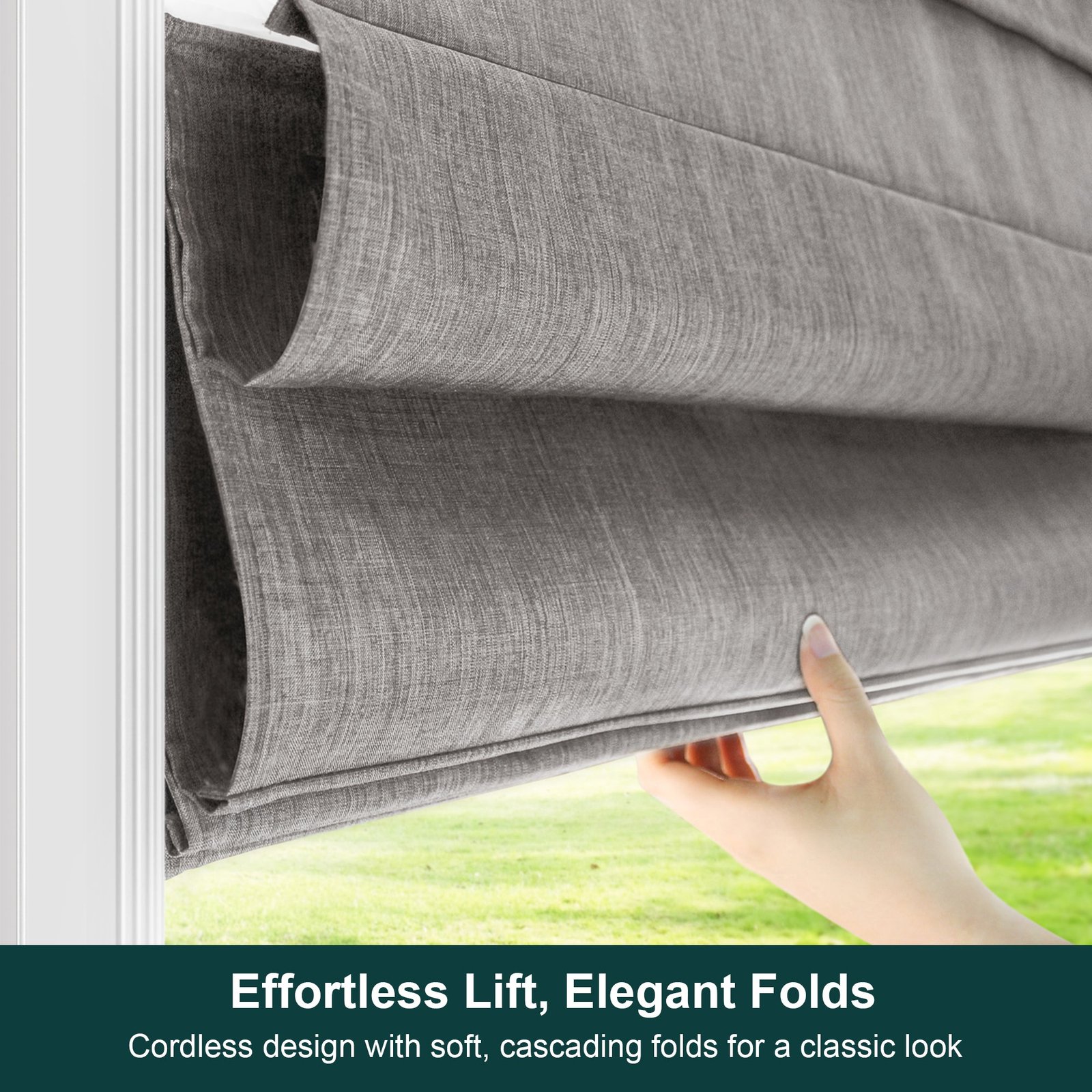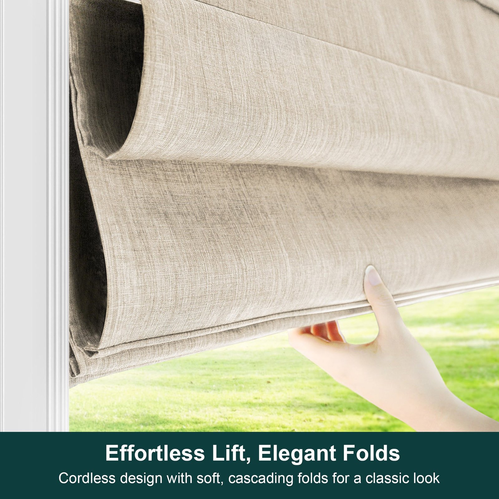 These neutral, versatile Roman Shades will add the perfect elegant touch to your room! Crafted from soft fabric drapes, their neutral palette makes them versatile enough for any décor. Plus, they’re cordless, so you can control the level of light and privacy with just the touch of a hand. Make a chic statement without saying a word.