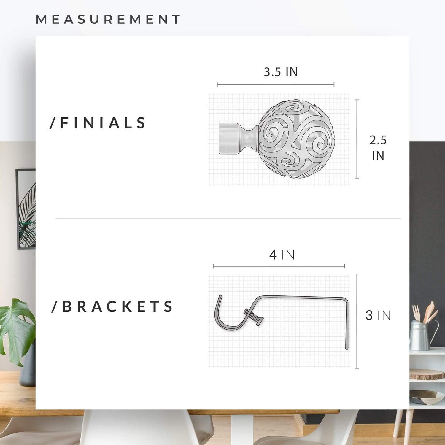 The perfect complement to your new curtains or drapery. The designs and finishes are versatile without being plain and allow you to create a stunning accent to your home. Each drapery rod is made of high quality 100% steel, and will be a lasting addition to your home décor update.