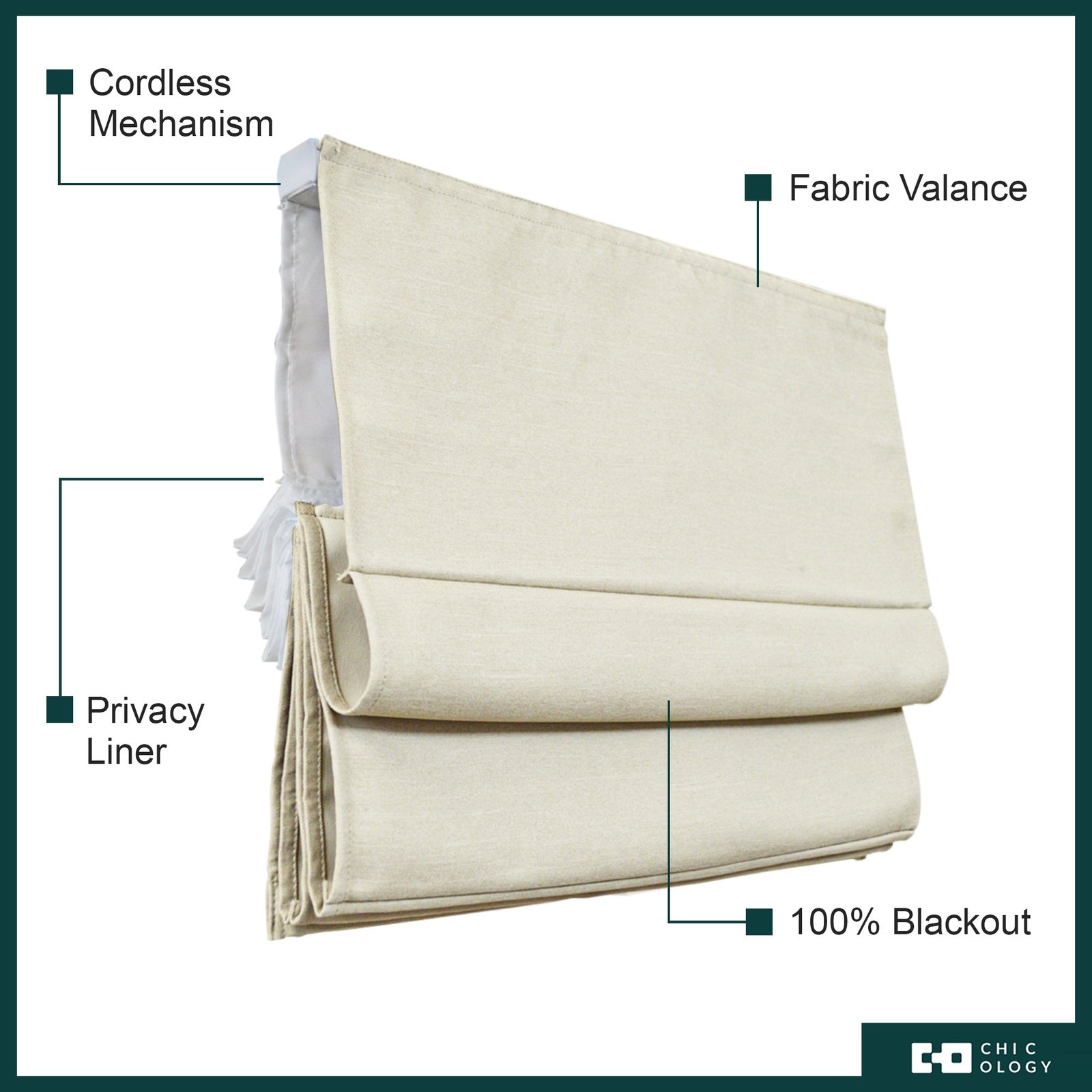 Roman Shades – Blackout. Thermal Coated Lining