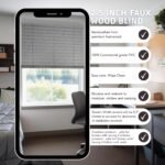 These faux wood blinds feature a textured, wood grain design for a sophisticated look. With 2.5 inch slats, they provide excellent room darkening capabilities. Plus, the durable PVC material is warp, fade, and chip resistant for long-lasting use. Enjoy the added convenience of cordless lift, making them safe for children and pets in the home. Comes with a matching flat valance for a sleek finish.