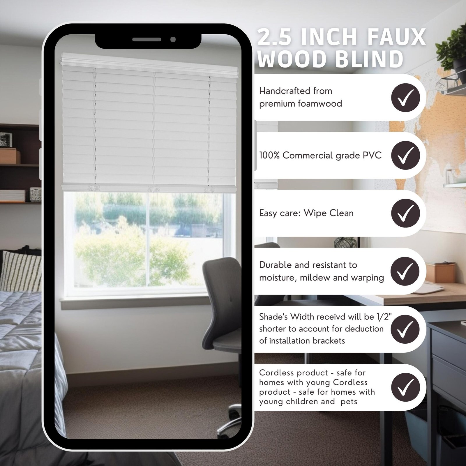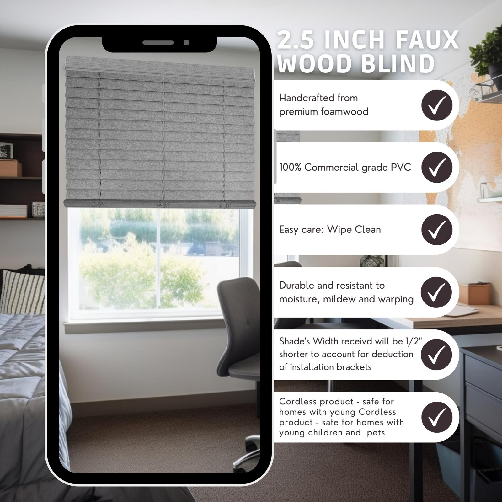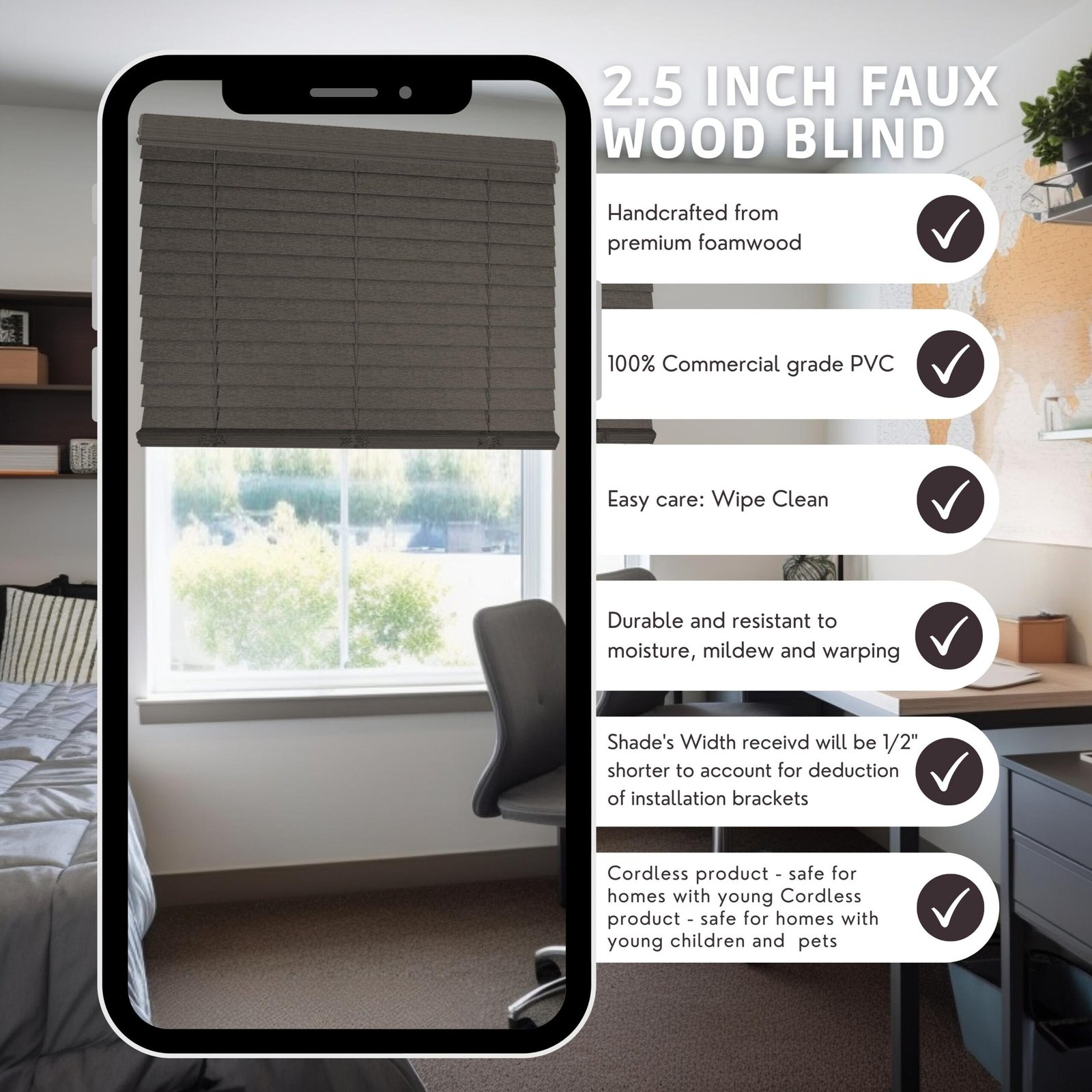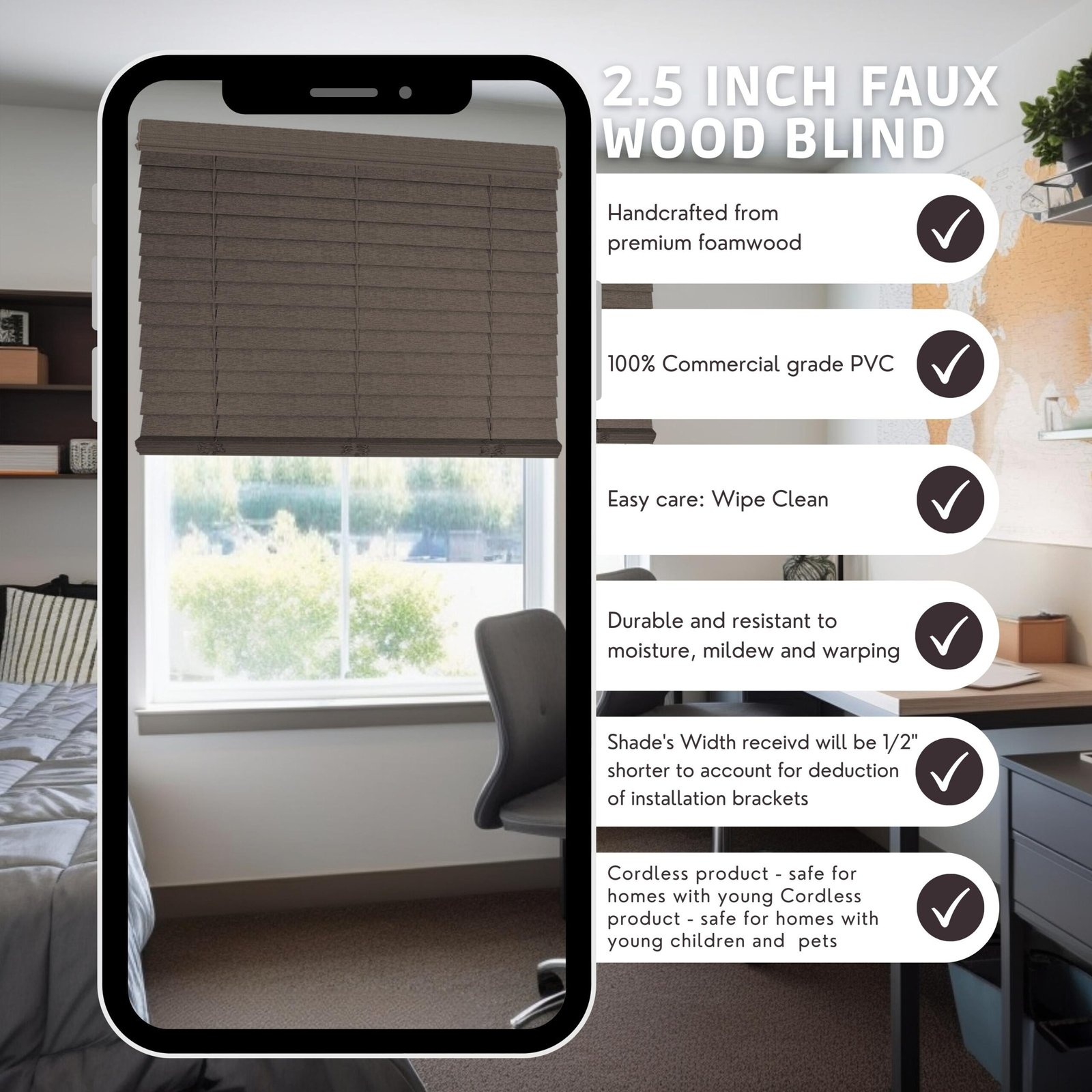 Custom Faux Wood Blinds – 2.5′ Slats, Room Darkening, Textured